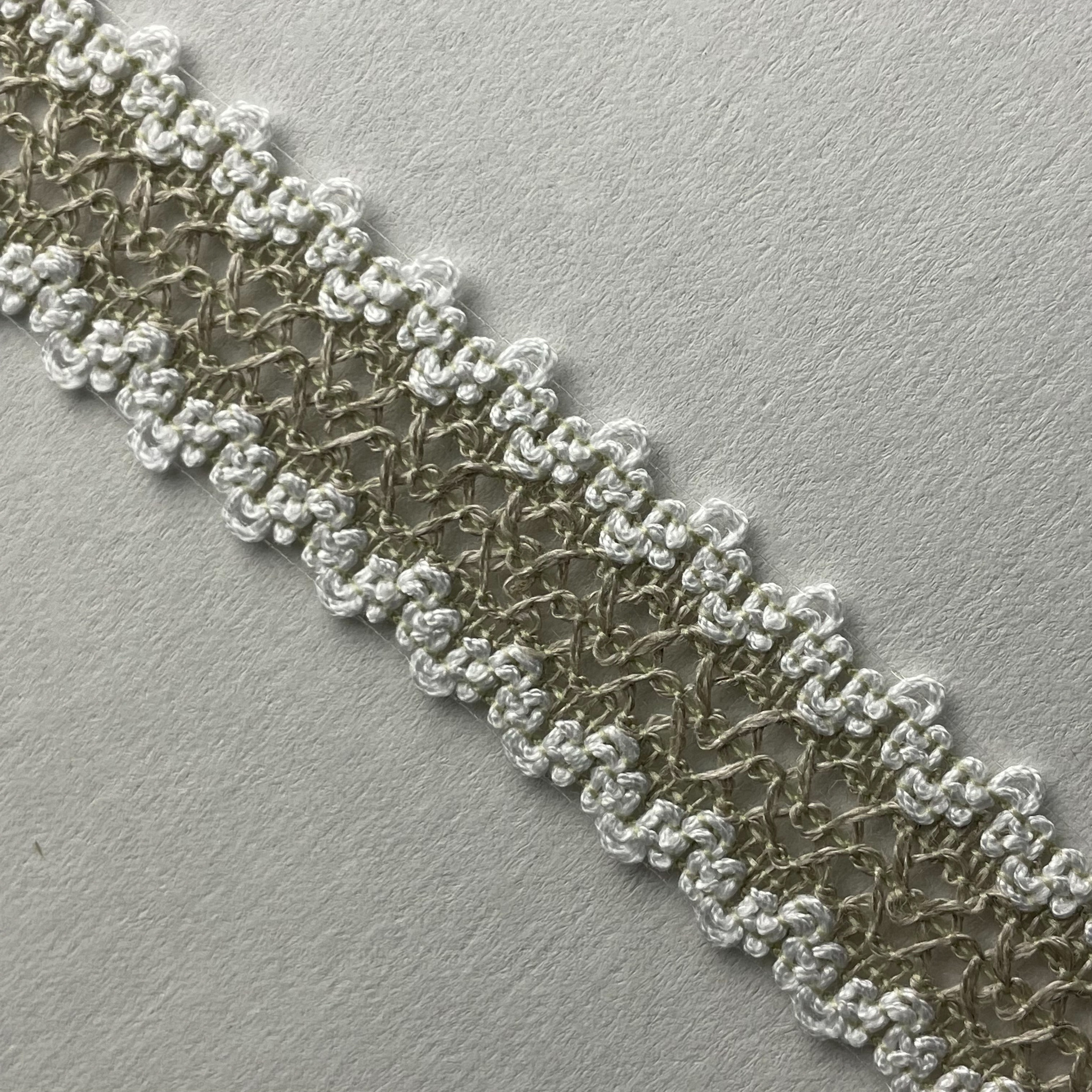 Тесьма вязаная ш.23м, цвет лен с белым