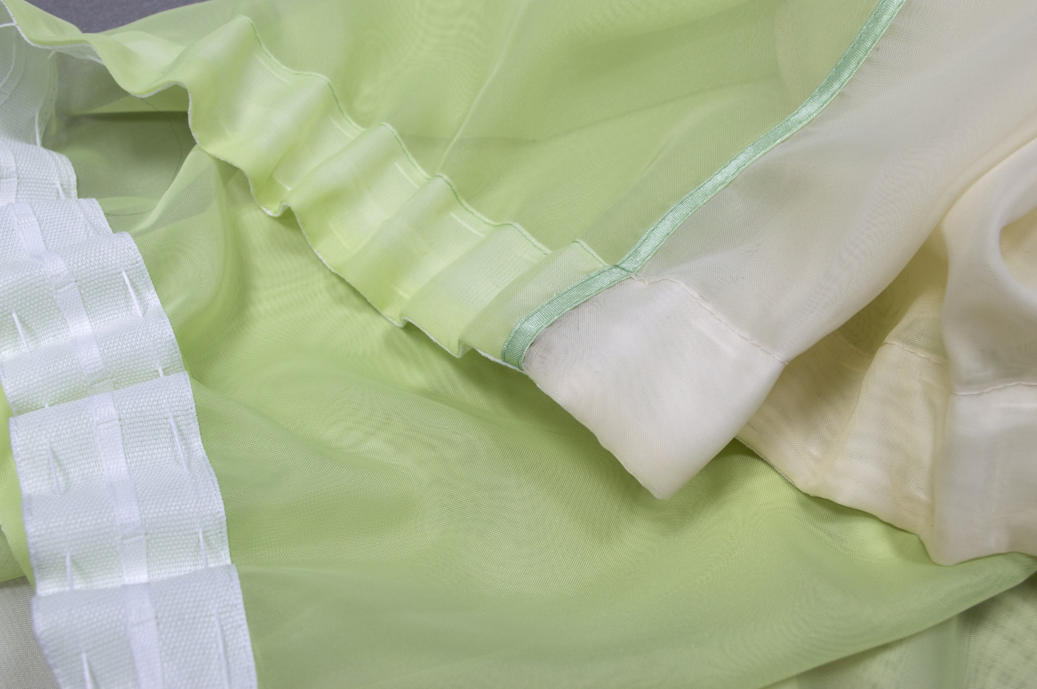 Размер готовой шторы: 2,88 м шириной и 1,47 м высотой. Обработка косой бейкой.